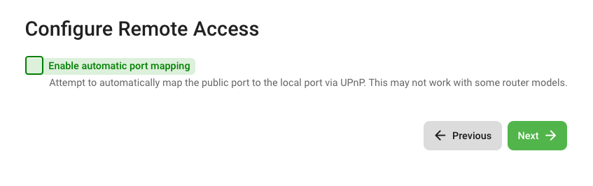 8. Uncheck Enable automatic port mapping. Click Next.